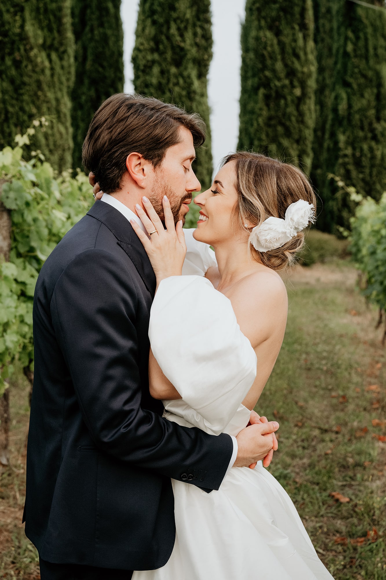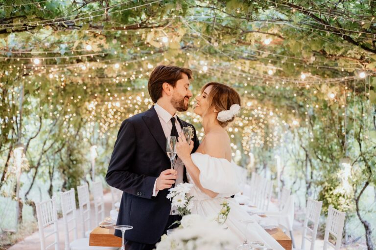 The wedding of Mariano and Roberta was an emotional and elegant event, celebrated in the charming Basilica of Sant’Angelo in Formis, one of the most fascinating places to get married in the province of Caserta. The reception took place in the beautiful Villa Paolina in Pontelatone, a dreamlike location immersed in nature, perfect for those desiring a refined and timeless wedding.