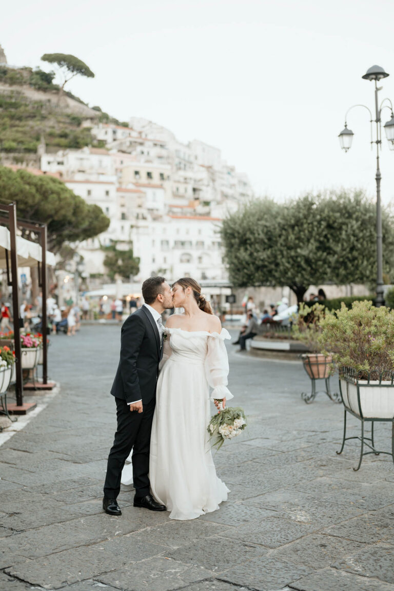 С его утесами, уходящими в кристально чистое море, очаровательными улочками и панорамными террасами, с которых открываются захватывающие дух виды, побережье стало идеальным местом для свадьбы, воплотившей всю их любовь и счастье. Каждый уголок этого природного рая помог создать волшебную атмосферу, которая сделала их день еще более особенным.
