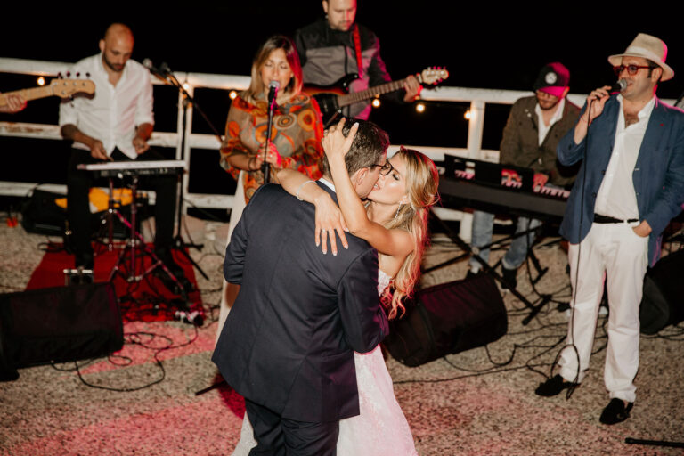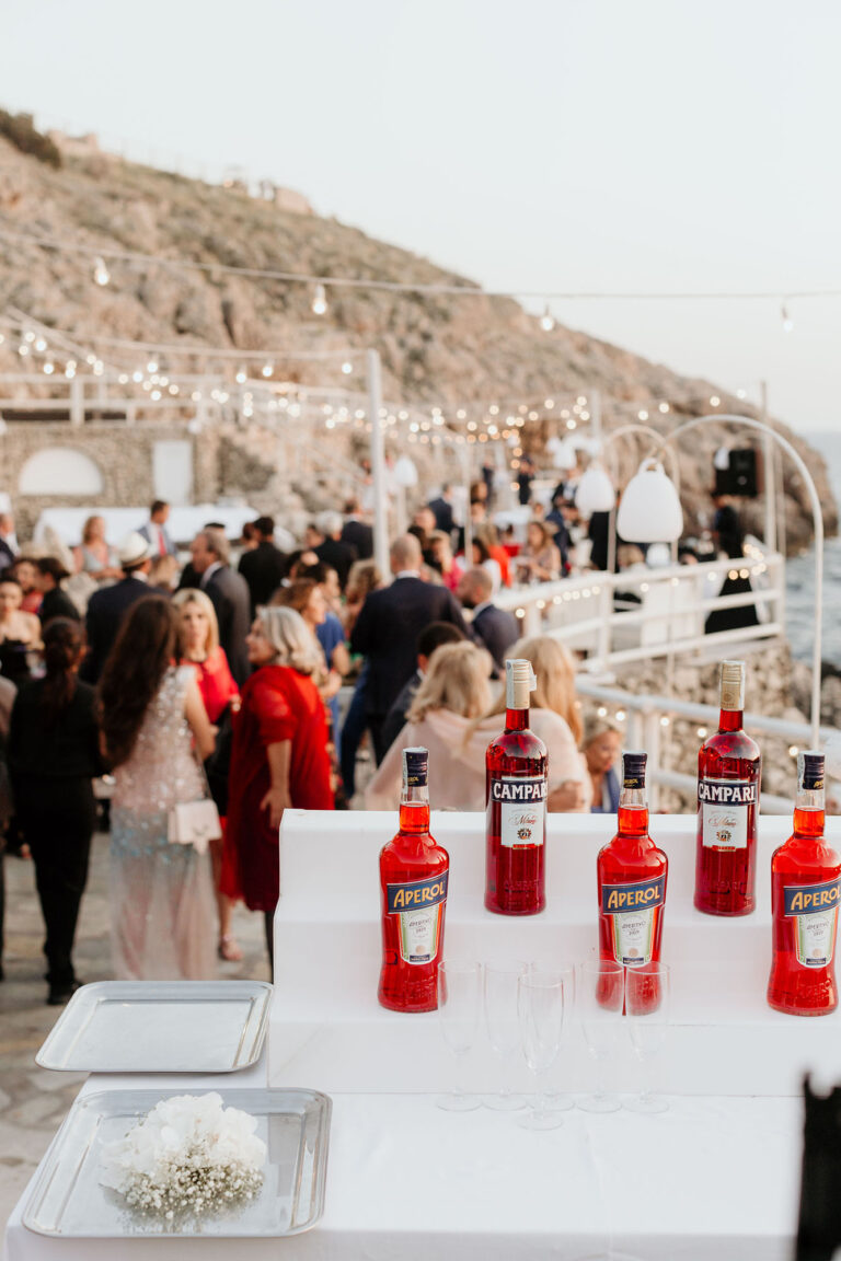 Свадьба прошла в сказочной обстановке, с потрясающим видом на кристально чистое море и утесы, уходящие в синюю воду. Ресторан Ristorante del Faro, известный своей изысканной кухней и уникальной атмосферой, принял молодоженов и их гостей на незабываемый прием. На фоне заката, окрасившего небо в яркие цвета, Микеле и Анна праздновали свою любовь в окружении близких и вечной красоты острова.
